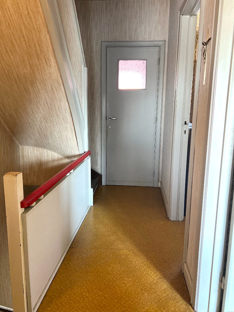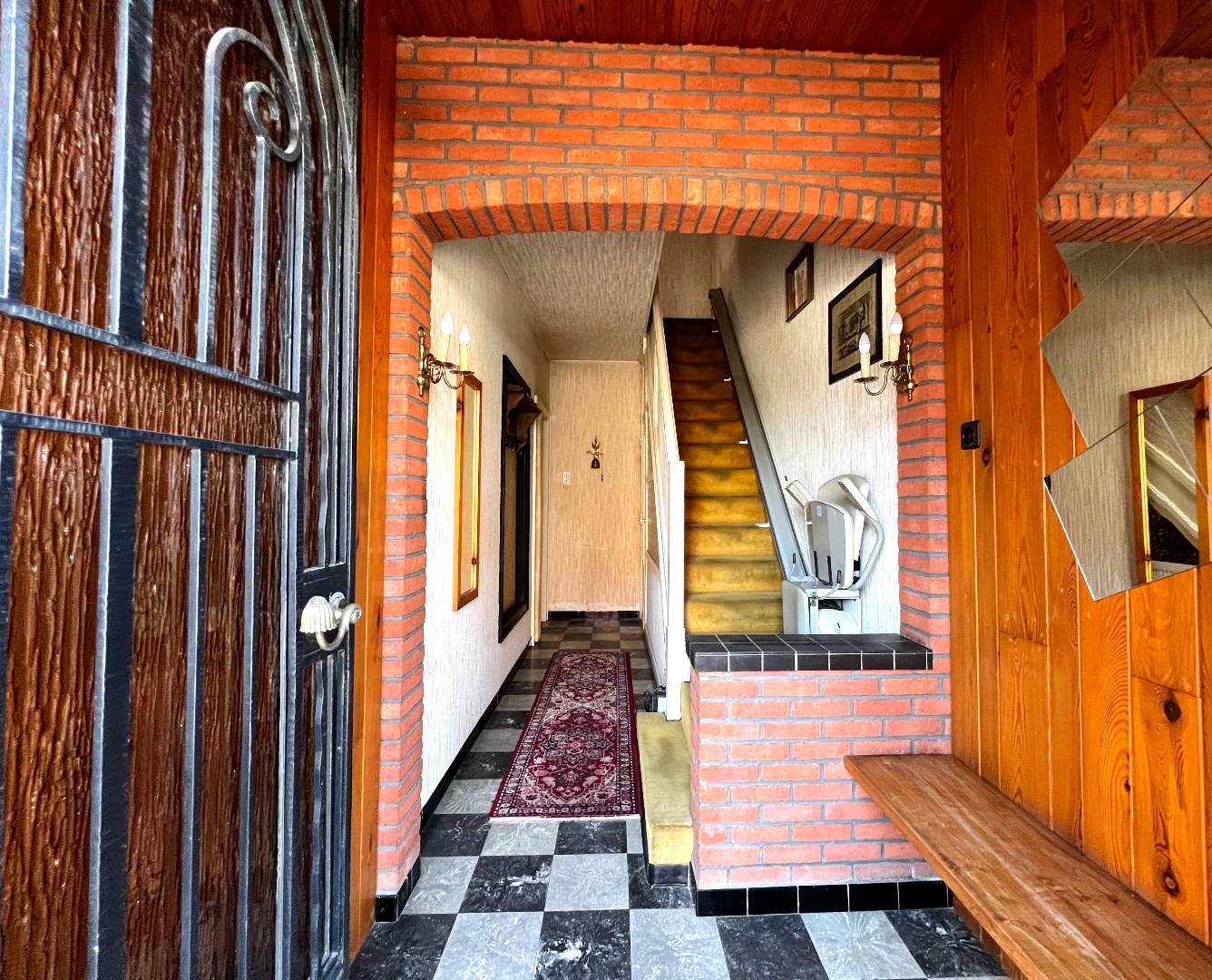 Inkomhal met trap naar het verdiep en trap naar de droge kelder.