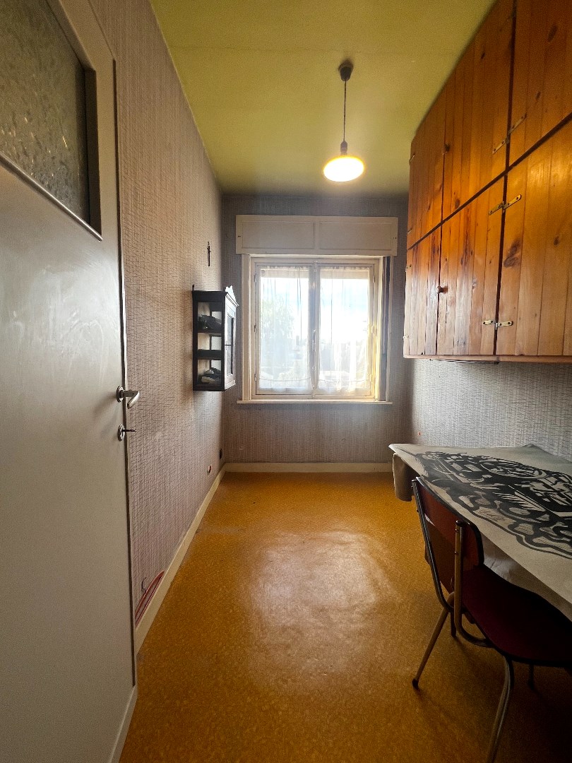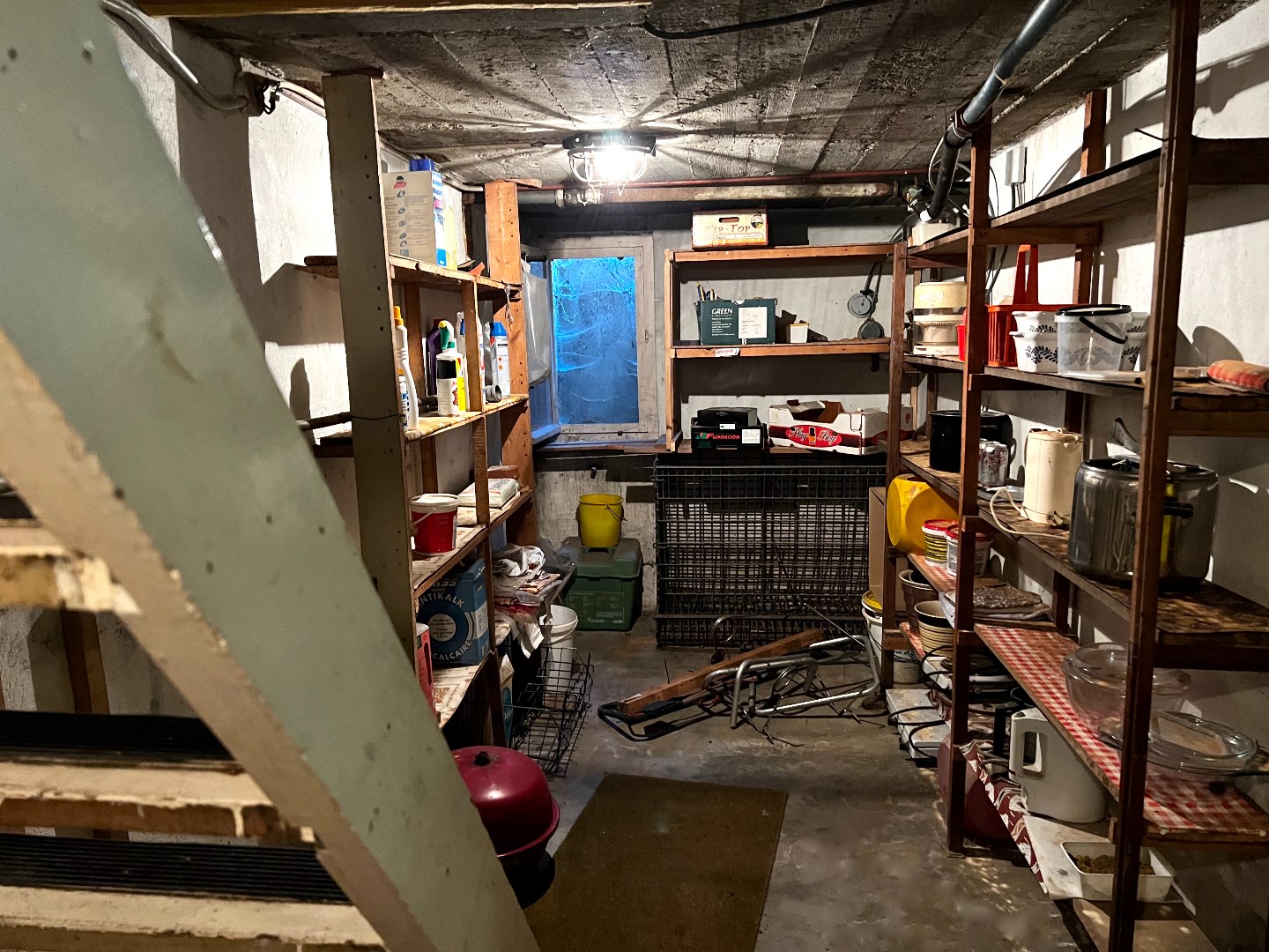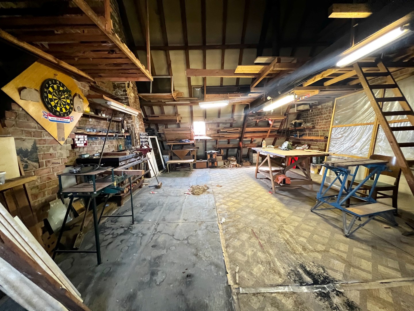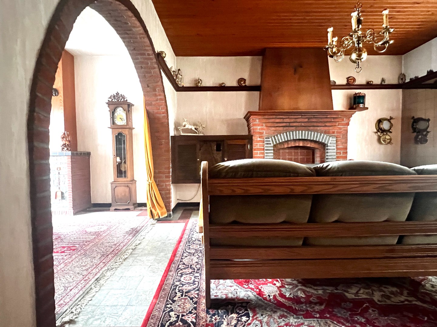 Leefruimte in twee delen (met een prachtige boog), gesloten keuken, berging en toilet.