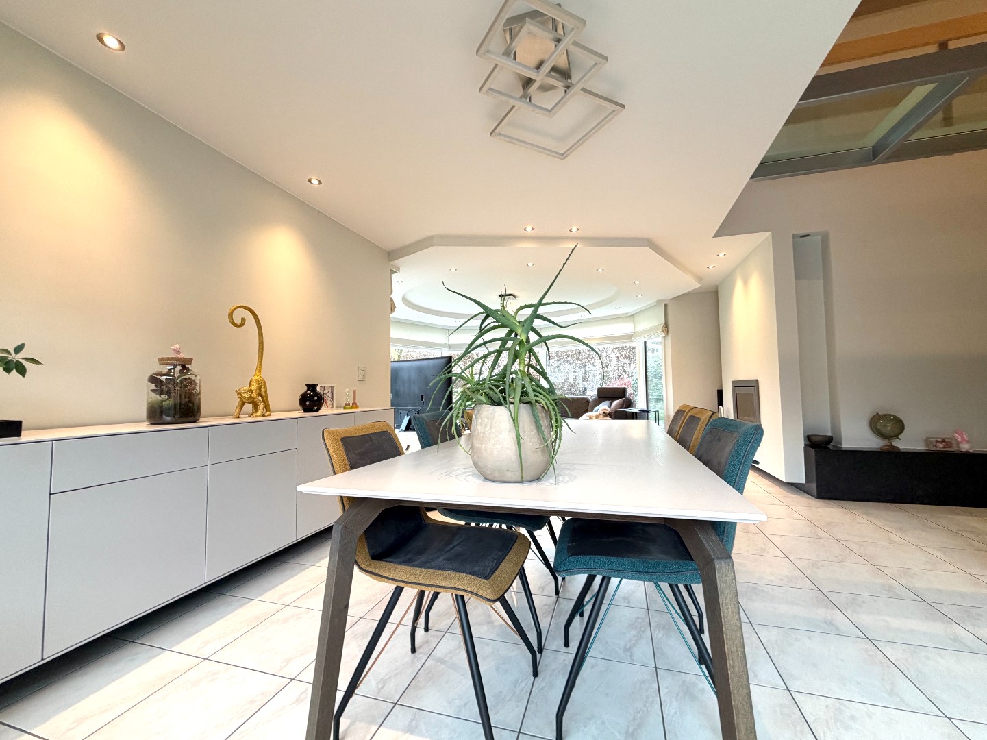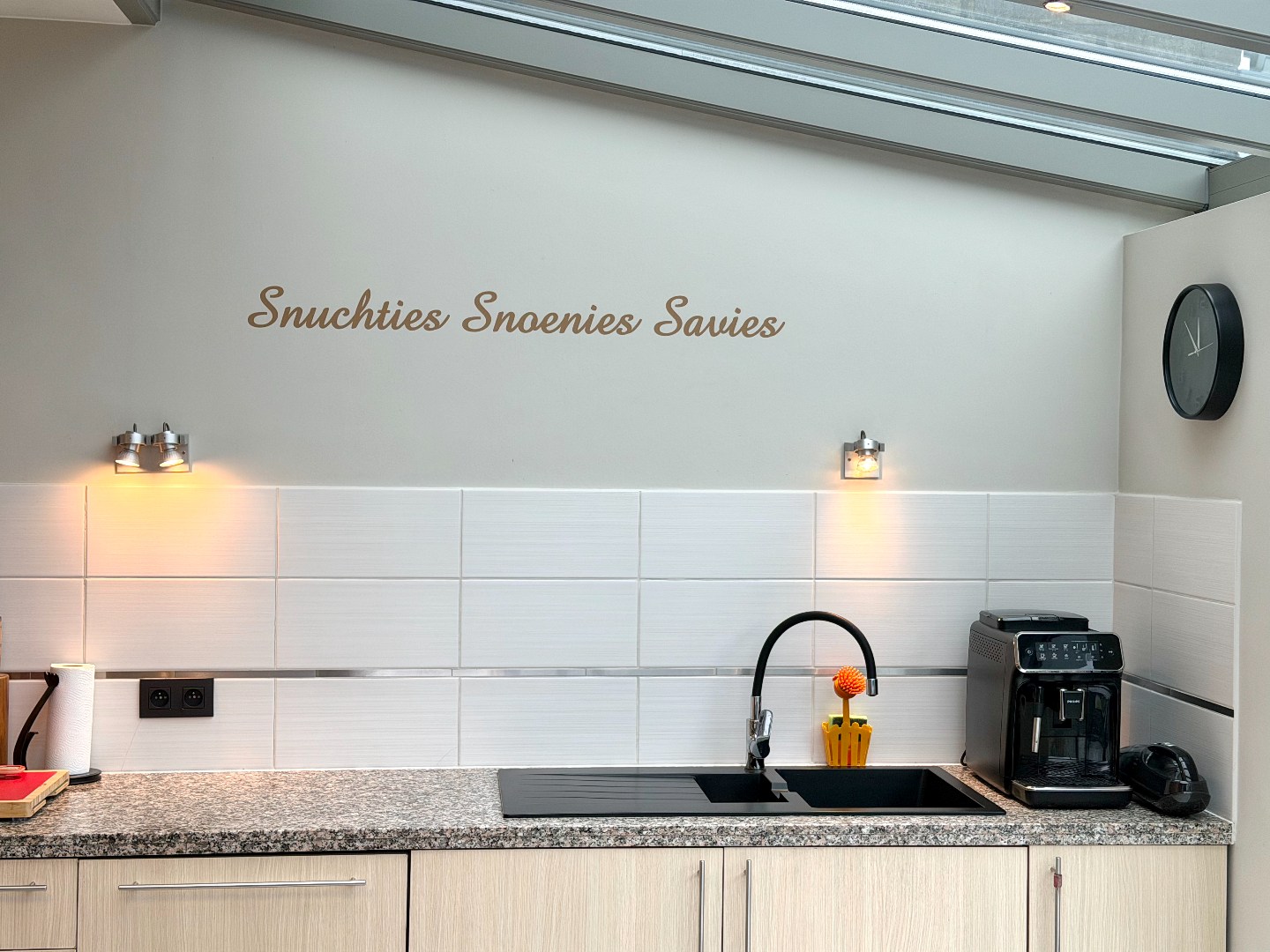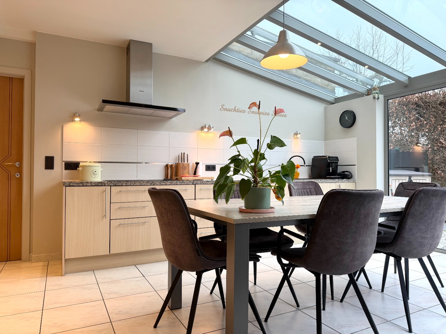 De leefkeuken, ondergebracht in een aangebouwde veranda, vormt het hart van de woning. Hier geniet u tijdens het koken van een heerlijk uitzicht op het groen rondom u.