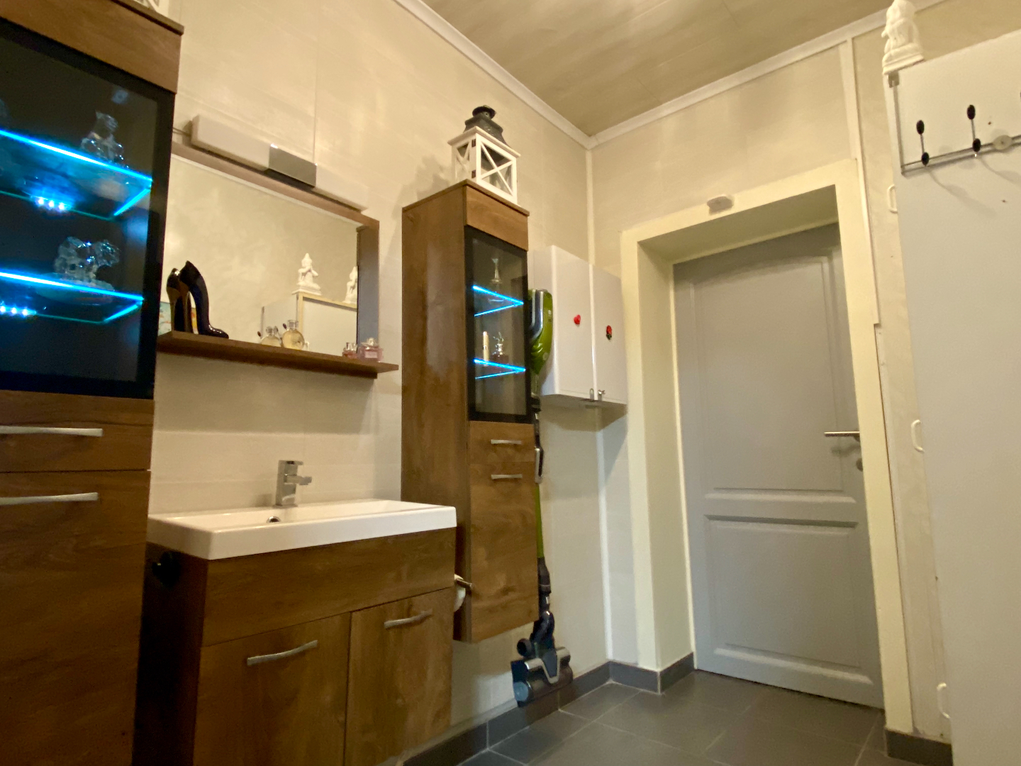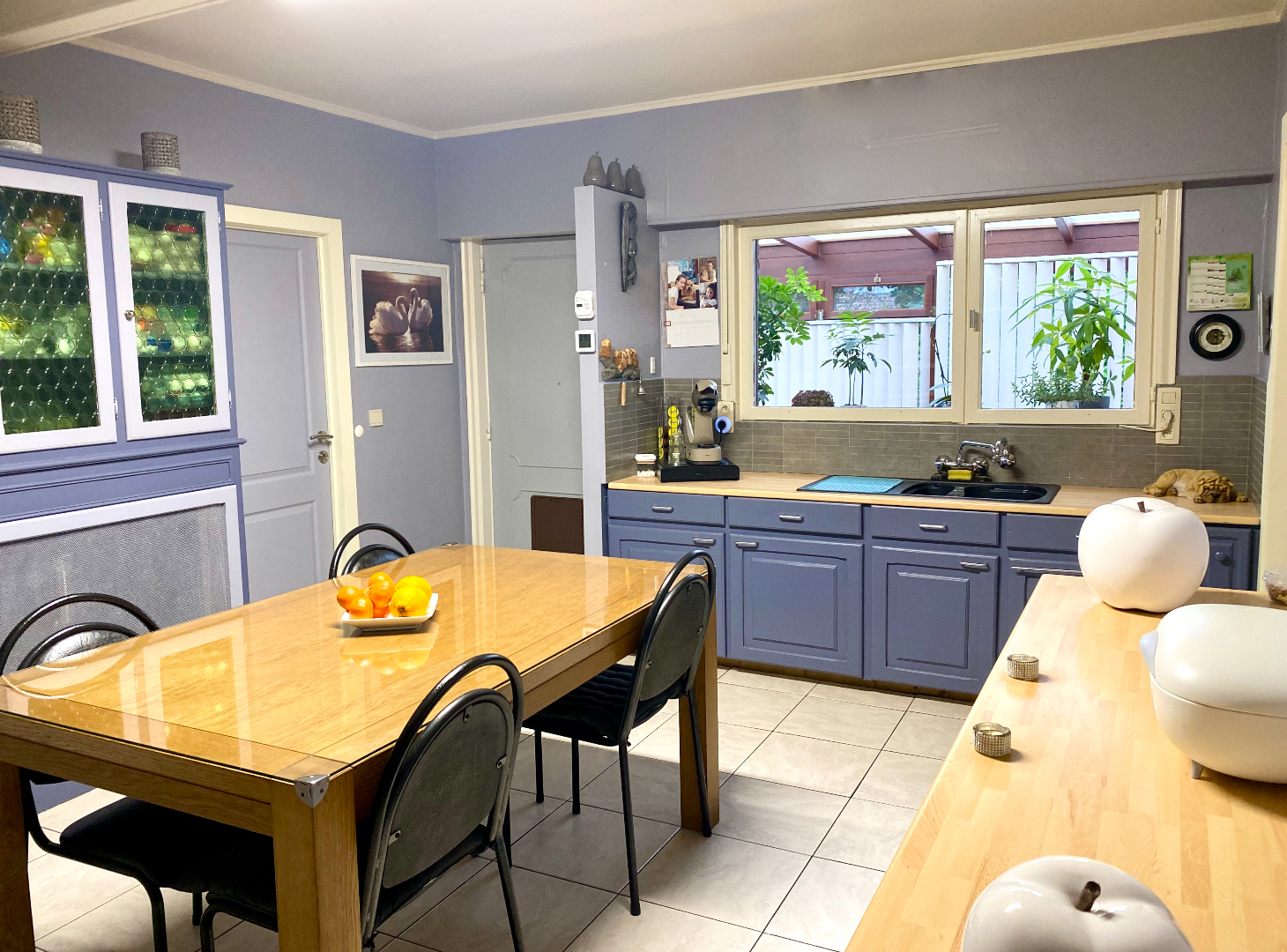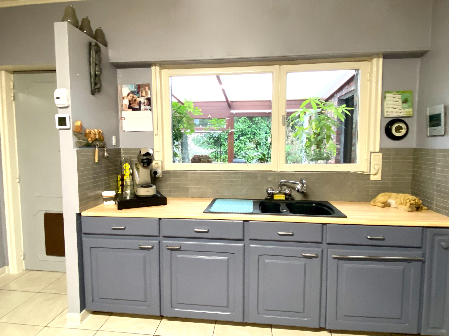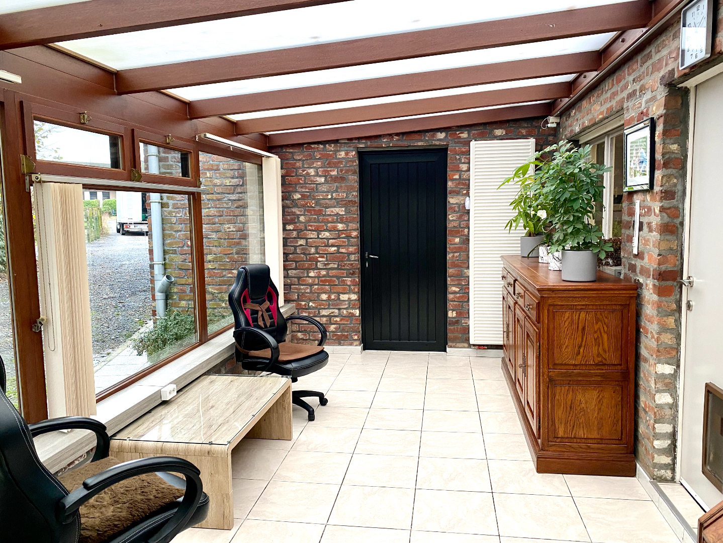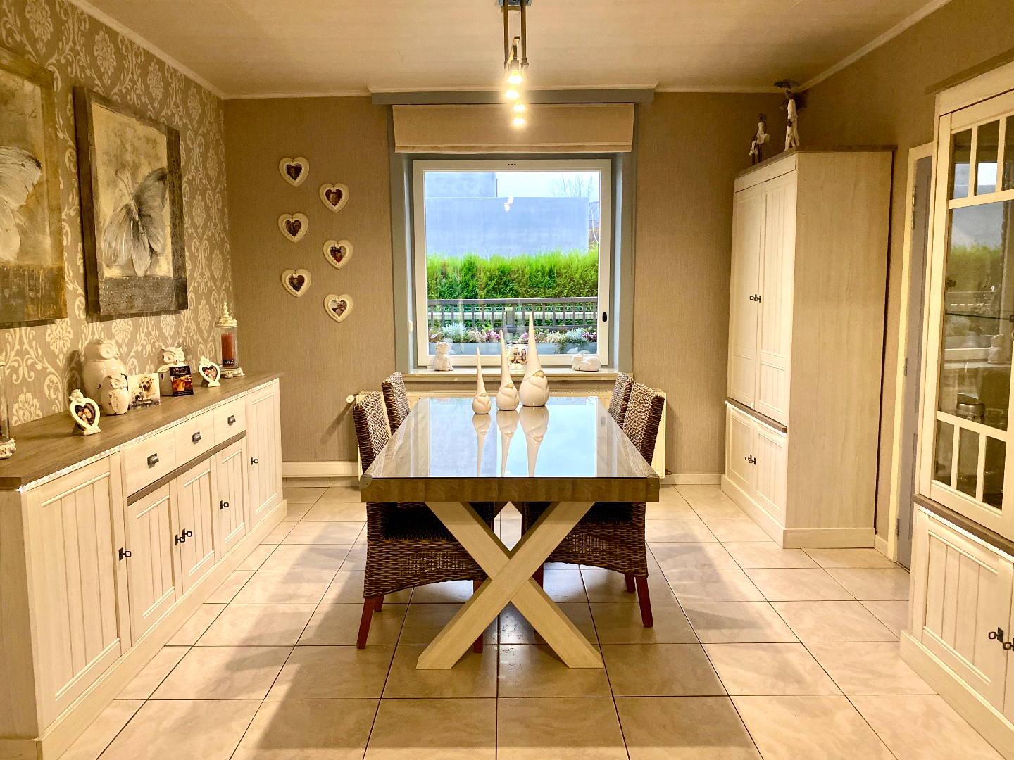 Deze open bebouwing is gelegen in een doodlopend straatje. De eigenaars hebben hier hun kinderen opgevoed en nu ze op pensioen zijn is de tijd rijp om hun woning te koop te stellen. Inkomhal, gezellige leef- en woonruimte, grote keuken met toegang tot de verwarmde veranda en grote garage (met geautomatiseerde poort), badkamer met wasmeubel, apart toilet en douche (alsook de aansluitingen voor wasmachine en droogkast, gelijkvloerse grote slaapkamer, tweede badkamer met lavabomeubel.