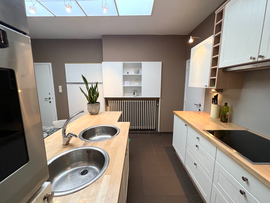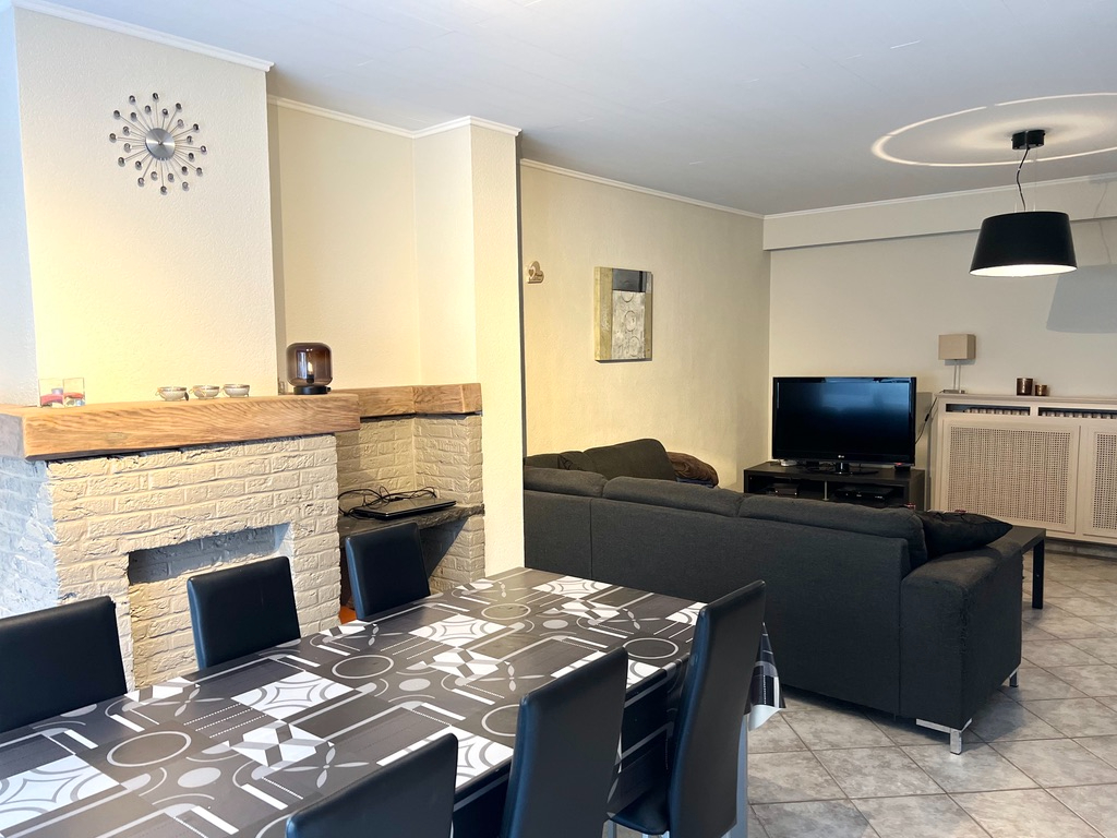 De woning zelf heeft een brede inkom en toegang tot de kelder. De leefruimte is groots opgevat en biedt plaats voor een grote eettafel en een gezellige tv-hoek. Aansluitend een knap vernieuwde keuken met eetmogelijkheid. Gastentoilet en was- en berging alsook de technische ruimte (nieuwe hoogrendementsketel) tevens op het gelijkvloers terug te vinden. Een groot terras ontbreekt niet, het zonnetje verwelkomt je van in de namiddag tot de avond.