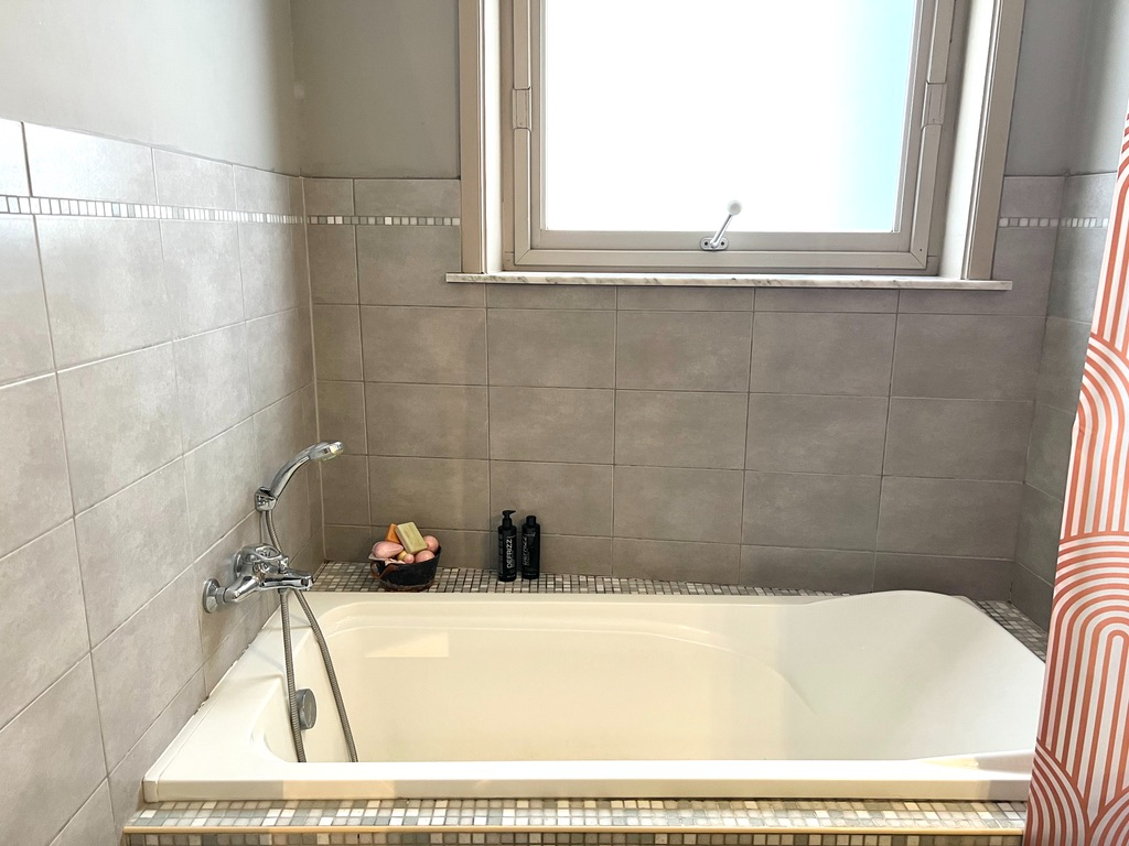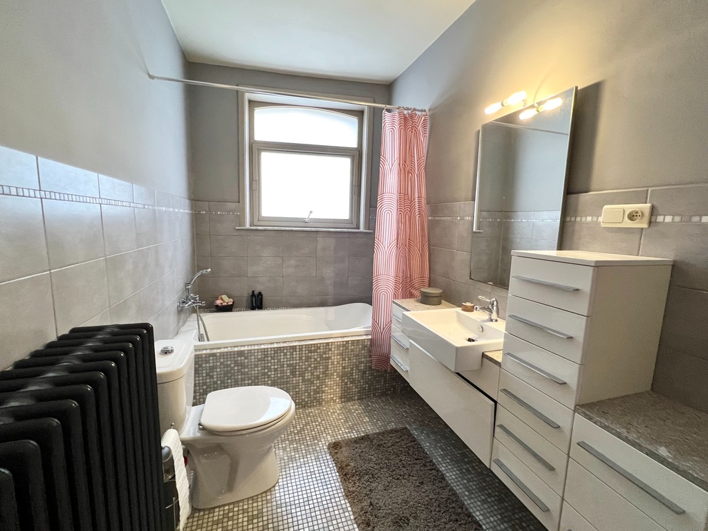 Op het eerste verdiep zijn er twee grote slaapkamers en een badkamer met toilet - wastafel en ligbad.