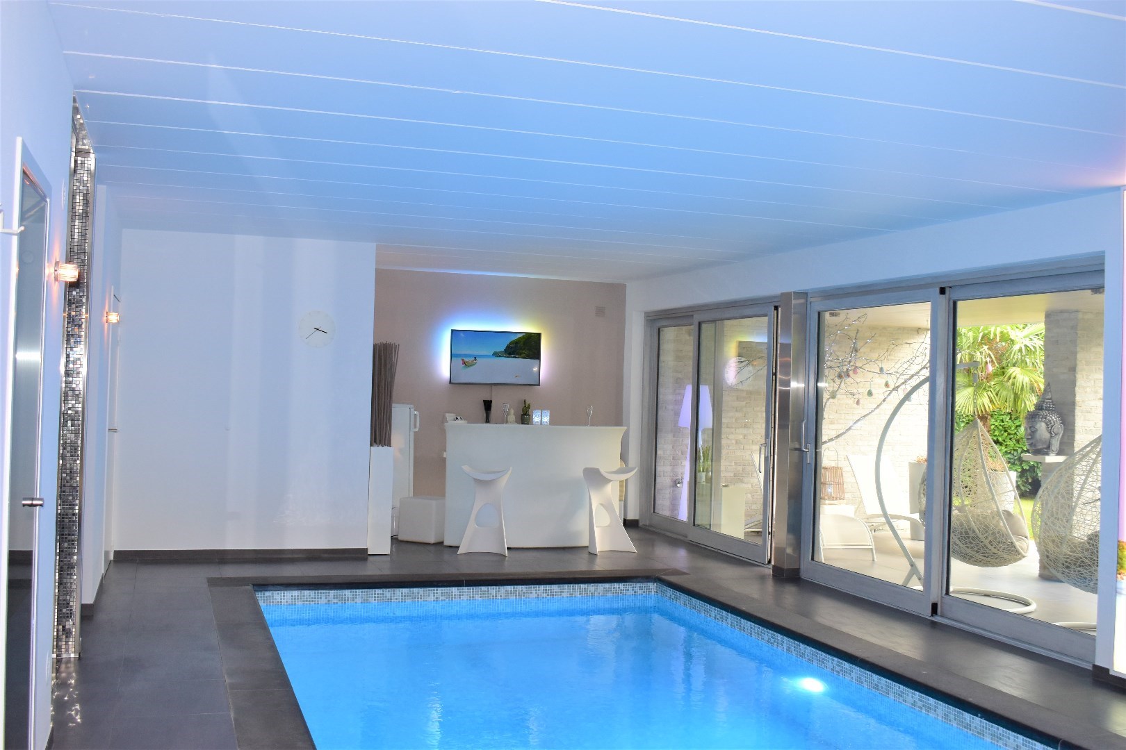 Deze woning beschikt over een zwembad binnen, een sauna en een jacuzzi. Hierdoor kun je het hele jaar door genieten van ontspanning en luxe. Daarnaast is de elektriciteit volledig conform de normen.